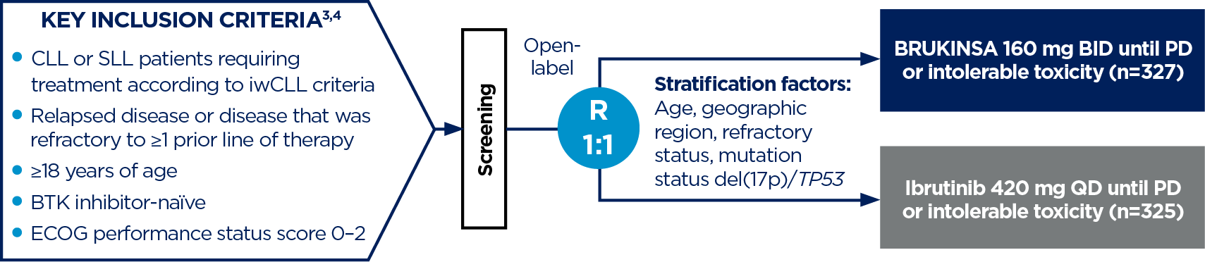 The pivotal ALPINE study (NCT03734016) is a global, randomised, open-label, head-to-head, Phase 3 study for the treatment of patients with R/R CLL/SLL.3,4