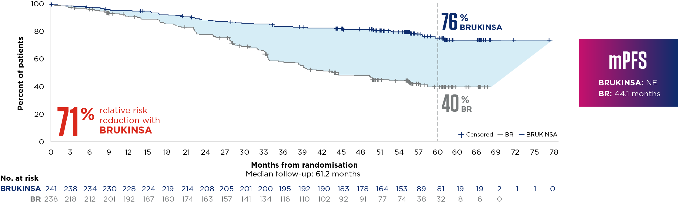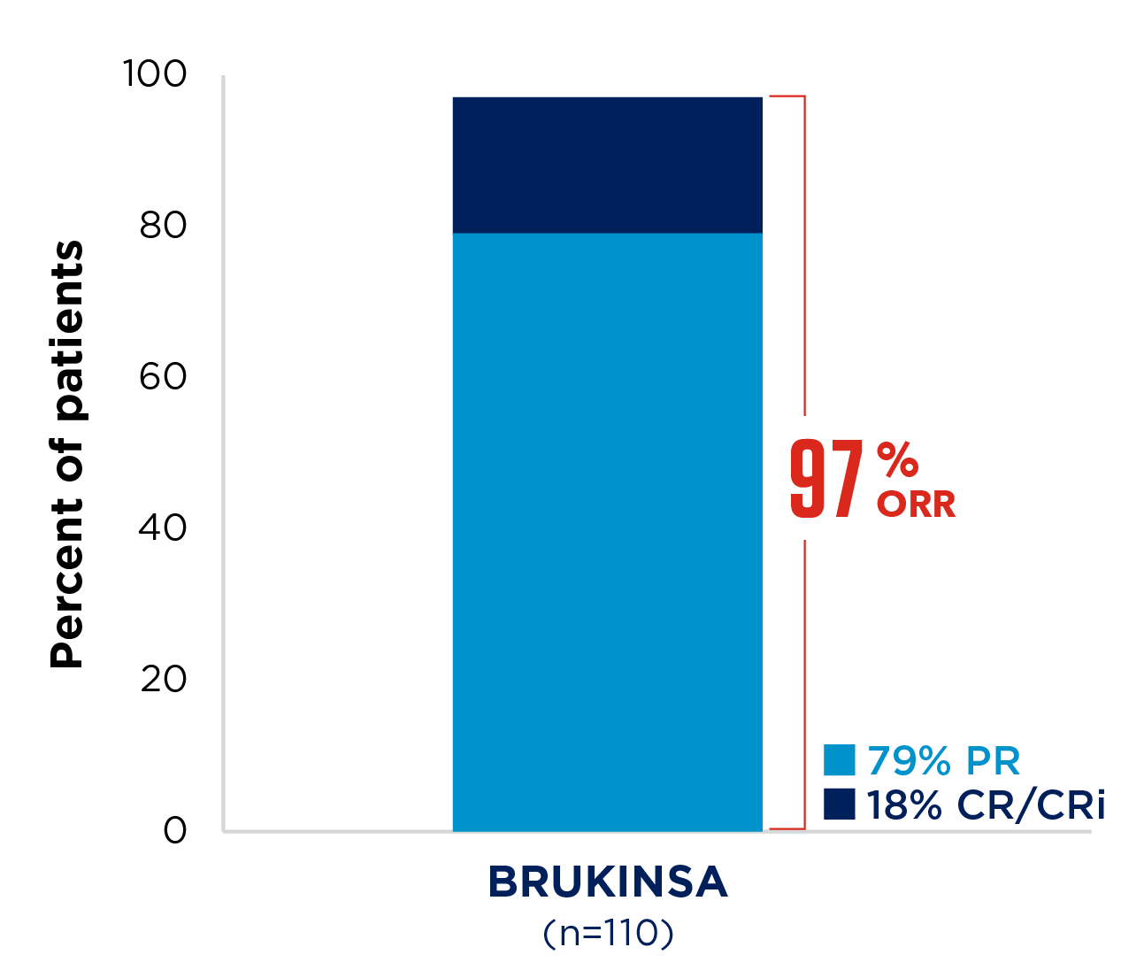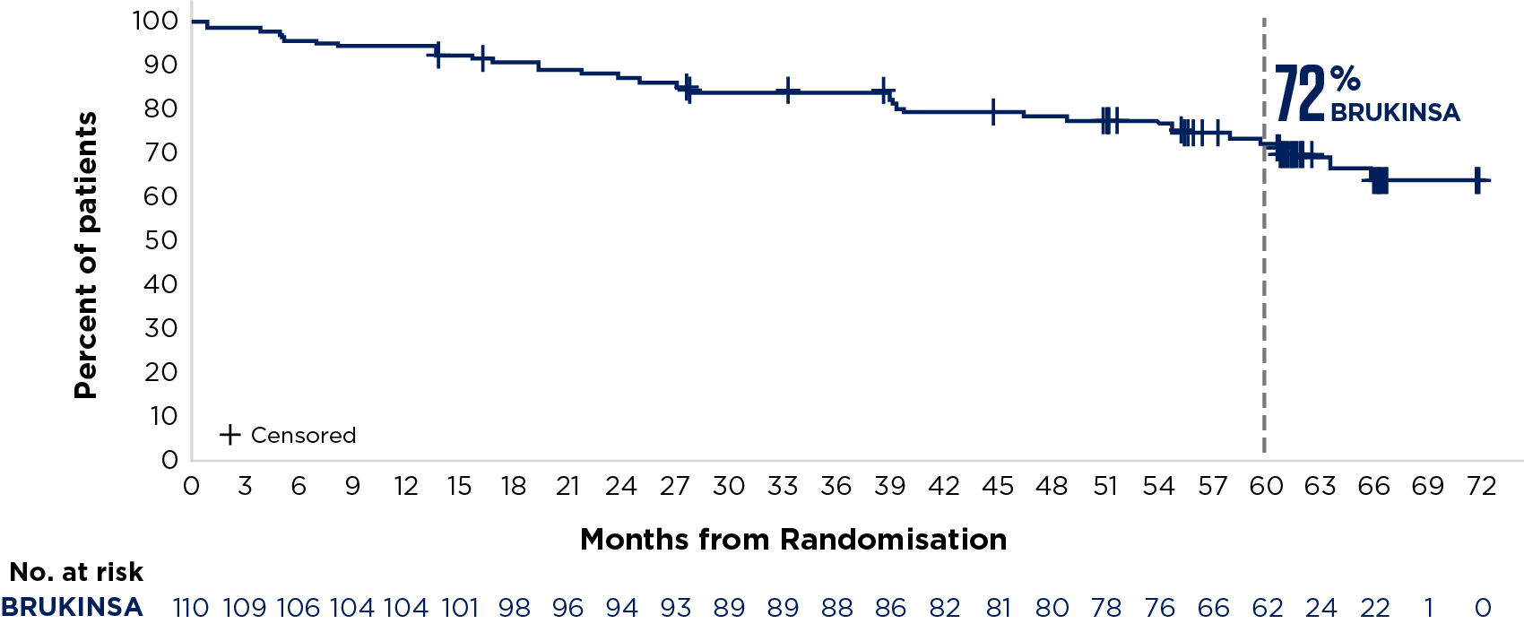 SEQUOIA was a randomised, open-label, Phase 3 trial of BRUKINSA vs BR in patients with TN CLL. Because patients with CLL/SLL whose tumours exhibit del(17p) have an unfavourable prognosis and respond poorly to standard CIT, patients with del(17p) mutations were assigned to receive BRUKINSA in a separate single-arm exploratory analysis. Cohort 1 enrolled patients without del(17p): BRUKINSA vs BR (n=479). Cohort 2 enrolled patients with del(17p); BRUKINSA single arm (n=111).5