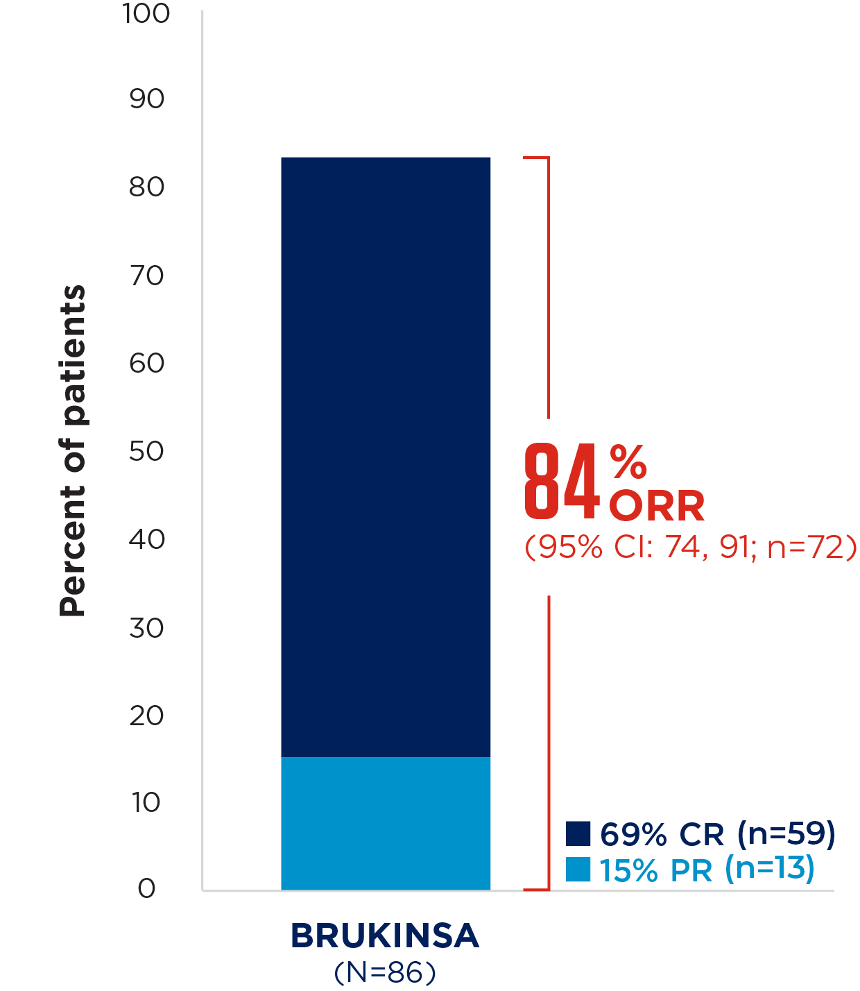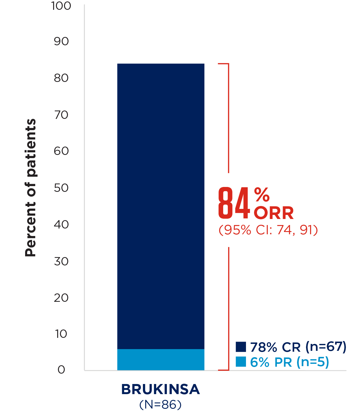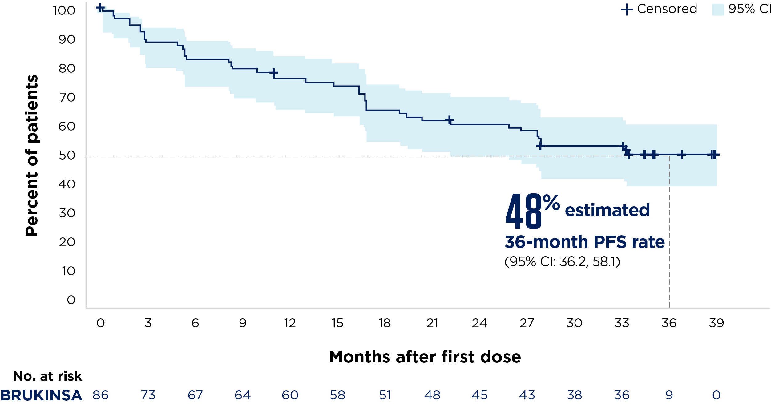 BRUKINSA achieved deep responses that translated into meaningful long-term survival in R/R MCL6,7